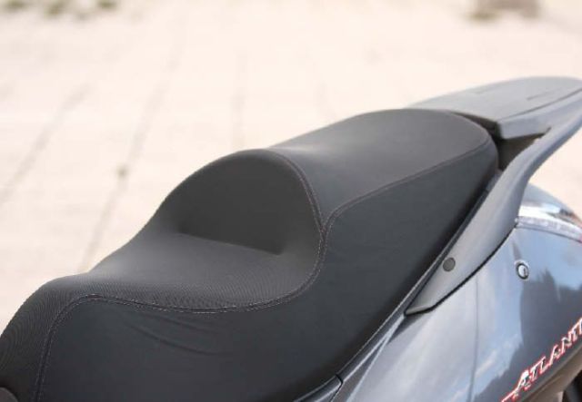 Και σε αυτόν τον τομέα, οι αλλαγές είναι μικρής έκτασης, αλλά παίζουν σημαντικό ρόλο στη συνολική εικόνα του Atlantic. Η επανασχεδιασμένη σέλα διατηρεί ψηλά τα επίπεδα άνεσης, χάρη και στην ειδική στήριξη της μέσης του αναβάτη που παρέχει. Το τμήμα που αναλογεί στο συνεπιβάτη είναι μεγάλο και φαρδύ, ενώ εκείνο του αναβάτη είναι σαφώς πιο στενό, ώστε να μπορεί άνετα να πατάει στο οδόστρωμα. Επιπλέον, ο χώρος για τα πόδια είναι αρκετός και επιτρέπει και το άπλωμά τους στο μπροστινό κομμάτι της ποδιάς.