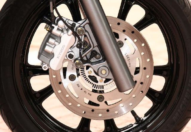 Η ιδιαίτερη προσοχή που έδειξαν οι άνθρωποι της Kymco στο People φαίνεται στα φρένα του, τα οποία είναι όχι μόνο καλά, αλλά ίσως και πιο καλά απ’ ό,τι χρειαζόταν. Φυσικά, αυτό σε καμιά περίπτωση δεν είναι κακό -το αντίθετο. Στο μπροστινό φρένο υπάρχει ένας δίσκος 260 χιλ., ο οποίος ακινητοποιείται από μια πλευστή δαγκάνα τριών εμβόλων, επιλογή όχι και τόσο συνηθισμένη για την κατηγορία.