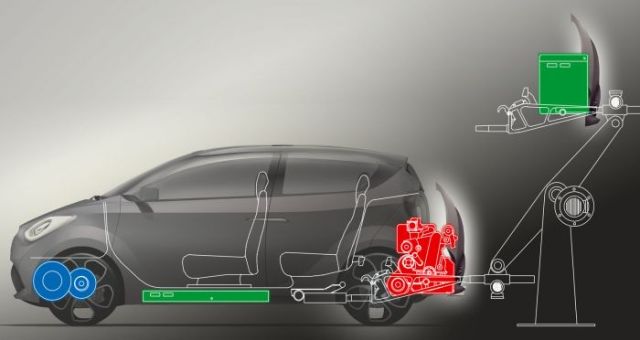 Η καθαρά ηλεκτρική διάταξη περιλαμβάνει μια μπαταρία 17 kWh, ενώ η υβριδική διάταξη περιλαμβάνει έναν κινητήρα εσωτερικής καύσης, κιβώτιο CVT, ρεζερβουάρ καυσίμου και λοιπά παρελκόμενα.