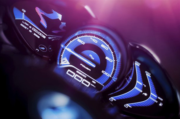 Στο εσωτερικό, η εικόνα είναι ανάλογη με την εξωτερική. Φυσικά, η διάταξη των «προχωρημένων» καθισμάτων είναι 2θεσιά, ενώ η φουτουριστική… διάθεση χαρακτηρίζει τόσο τη μορφή του συνόλου του ταμπλό, όσο ασφαλώς και των περιφερειακών χειριστηρίων και διακοπτών.