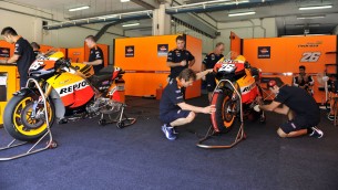 Όμως ενώ οι Yamaha και Ducati πάλευαν τον καιρό οι αναβάτες της Honda ήταν άφαντοι. Μια άγνωστη ακόμα μηχανική βλάβη στην RCV213 του Dani Pedrosa κατά την προχθεσινή πρώτη μέρα των επίσημων δοκιμών, ανάγκασε το HRC να μην επιτρέψει στους 4 οδηγούς του να συμμετάσχουν στη δεύτερη μέρα.