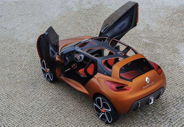 Συνδυασμένο με ένα κιβώτιο διπλού συμπλέκτη, προσφέρει οδηγική απόλαυση και χαμηλές εκπομπές CO2, με τη γαλλική εταιρεία να κάνει λόγο για 99 γρ./χλμ. Κατά τ’ άλλα, το Captur είναι ένα εντυπωσιακό μοντέλο. Διαθέτει δύο μόνο πόρτες, που ανασηκώνονται προς τα πάνω, καθώς και ουρανό κατασκευασμένο από Kevlar που, μάλιστα, μπορεί να αφαιρείται.