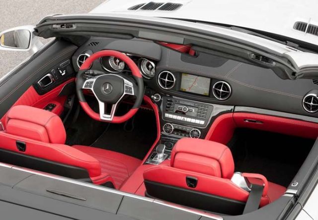 Στο εσωτερικό της νέας SL η Mercedes για μια ακόμη φορά δεν έχει κάνει καμία απολύτως παραχώρηση στη σχεδιαστική πολυτέλεια, την εξοπλιστική αφθονία και την υψηλότερη δυνατή ποιότητα των χρησιμοποιούμενων υλικών.