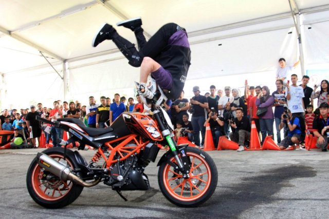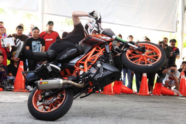 Ο σλοβένος στάντμαν Rok Bagoros που οδηγεί επίσημα για την KTM, προωθώντας το Duke 125, έκανε μία συγκλονιστική επίδειξη των ικανοτήτων του κατά τη διάρκεια της πρόσφατης έκθεσης MotoXpo, στην Kuala Lumpur της Μαλαισίας.