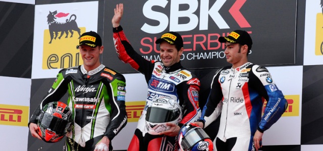 Ωστόσο κατάφερε να κρατηθεί, με μεγάλη προσπάθεια είναι αλήθεια, μπροστά από τον επελαύνοντα και κεφάτο Leon Haslam που πριν λίγο είχε, με την BMW του, περάσει τον Biaggi. Ο Ιταλός προσπάθησε να του αρπάξει την τρίτη θέση στους 2 τελευταίους γύρους, χωρίς ωστόσο να βρει τα λίγα δέκατα που χρειαζόταν.