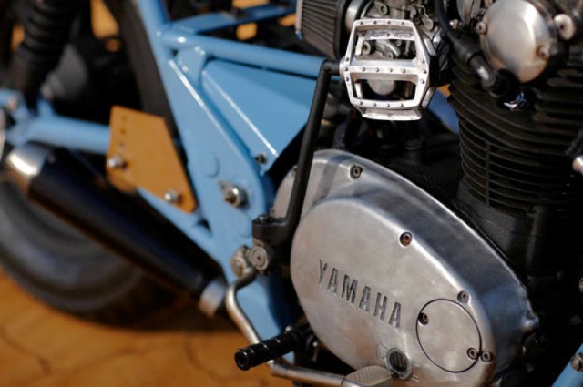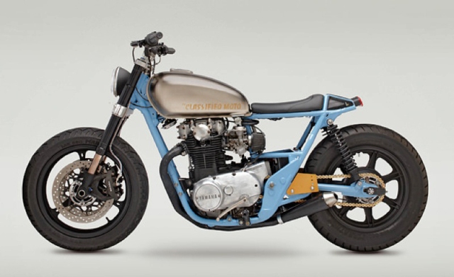 Πίσω στο XS650: «Θέλαμε να αποπνέει την αισθητική “Classified”, αλλά το γαλάζιο πλαίσιο δεν είναι το χρώμα μας», εκμυστηρεύθηκε ο John. «Προσπαθήσαμε να δημιουργήσουμε μια εικόνα αποστέωσης, “εξαφανίζοντας” την μπαταρία και άλλα περιφερειακά. Νομίζω ότι η μοτοσυκλέτα μοιάζει με street-tracker, αλλά δεν το κάναμε επίτηδες. Είναι λίγο αλλόκοτη, δεν ξέρω πως να την περιγράψω».