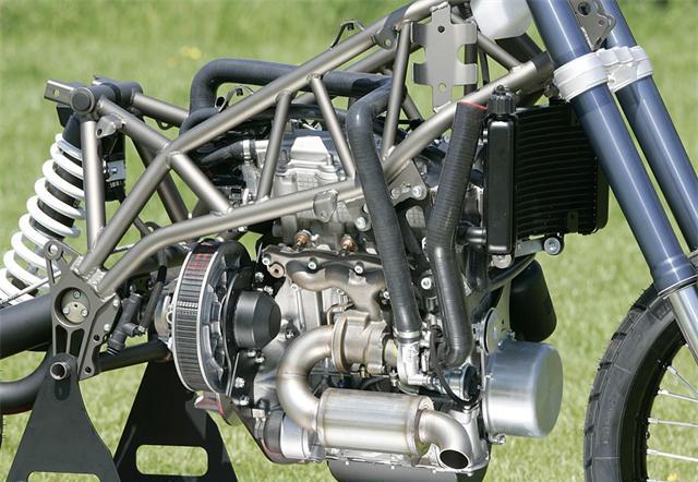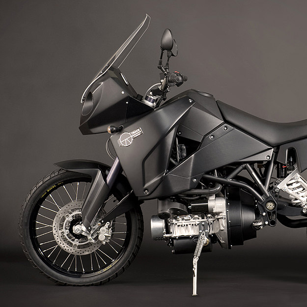 Στην εποχή που όλοι στρέφονται στην ηλεκτροκίνηση, η Evaproducts επέλεξε το δικό της δρόμο για την απομείωση του ενεργειακού αποτυπώματος της μοτοσυκλέτας της. Δεν δίστασε να δανειστεί καταξιωμένες λύσεις από τους κρατούντες στο χώρο (ΚΤΜ, BMW) για να στήσει το δικό της μοναδικό δημιούργημα και το αποτέλεσμα τη δικαιώνει απόλυτα.