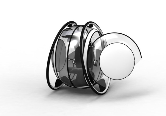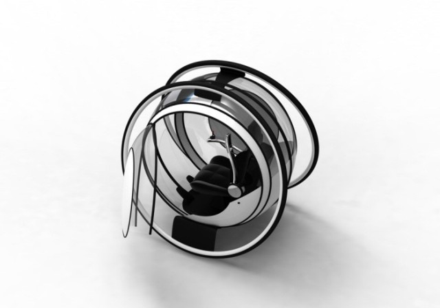 Ο μεγάλης διαμέτρου τροχοί βρίσκονται εκατέρωθεν της καμπίνας και είναι προφανές ότι ελέγχονται από σύστημα γυροσκοπίων, αντίστοιχο του Segway που επίσης ισορροπεί σε δύο πλευρικούς τροχούς.