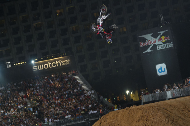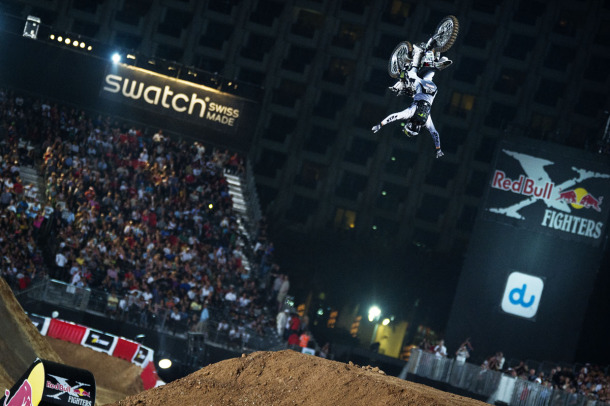 Το πρώην παιδί θαύμα του freestyle motocross και νυν πρωταγωνιστής των X-Fighters πήρε την πρώτη του νίκη από το 2010. Με την επικράτησή του ο 20χρονος Levi Sherwood έβαλε τις καλύτερες βάσεις για το έπαθλο του 1 εκατομμυρίου δολαρίων, μετά από μια σειρά άψογων εκτελέσεων που τον έφεραν στον τελικό της βραδιάς.