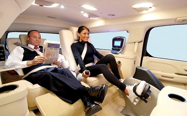 Αν έχετε από 100.000 ευρώ έως 200.000 ευρώ που σας περισσεύουν, μπορείτε να τα επενδύσετε αγοράζοντας τη λιμουζίνα της φωτογραφίας, την Cadillac Escalade ESVconversions, και να εξασφαλίσετε ταυτόχρονα τα πιο πολυτελή οδικά ταξίδια.