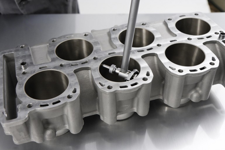 Η διάταξή του είναι εγκάρσια στη μοτοσυκλέτα και οι συνολικές του διαστάσεις ελάχιστα ξεπερνούν εκείνο ενός τρικύλινδρου, χάρη στην ευρηματική διάταξη των κυλίνδρων.