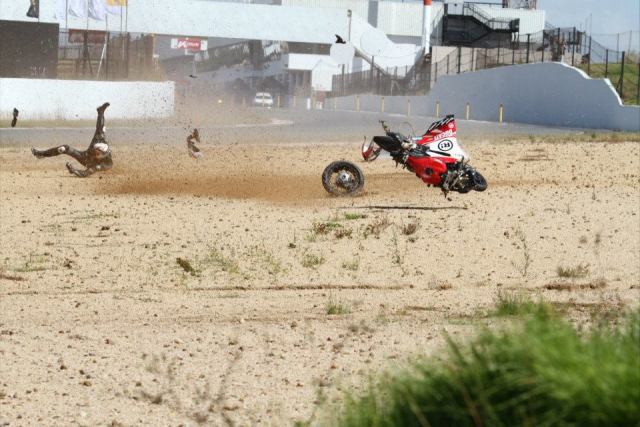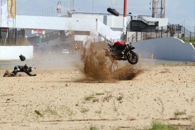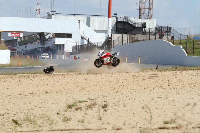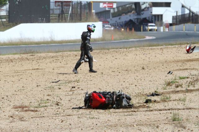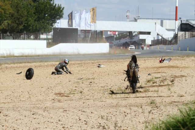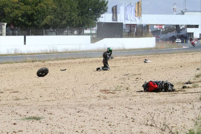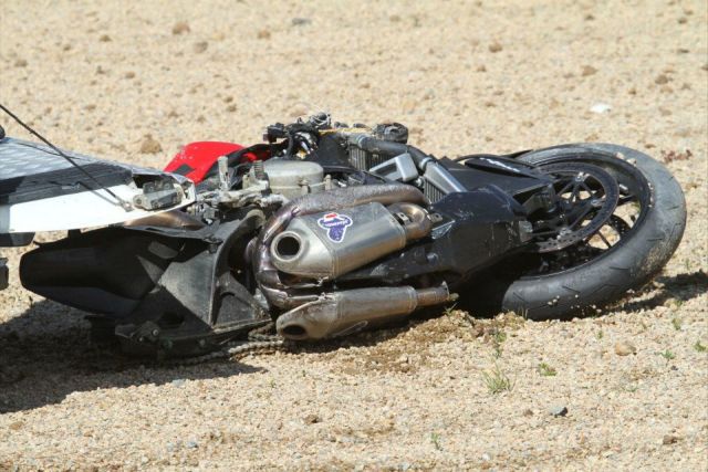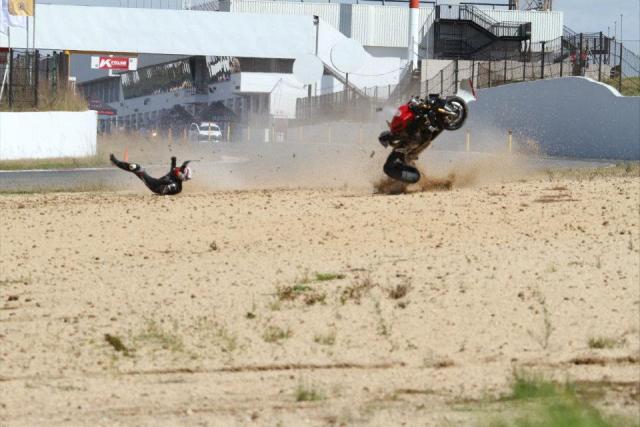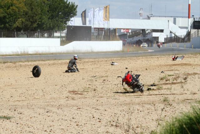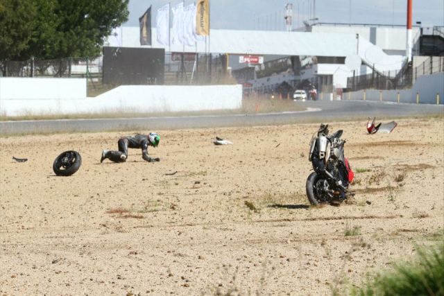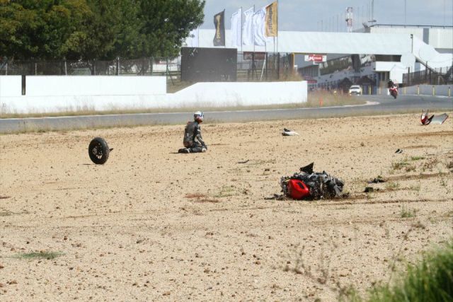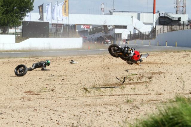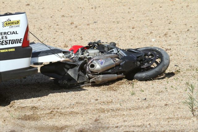 Ο Leeson στάθηκε τυχερός και γλίτωσε με λίγες κακώσεις, ενώ η δύσμοιρη Panigale θα χρειαστεί ολική ανακατασκευή (πριν την πετάξουν…).