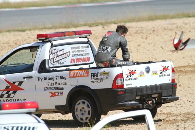 Και η ομάδα της δυσκολεύτηκε να την αναγνωρίσει μετά το ασταμάτητο τουμπίδι. Κι αυτά που μάζεψε είναι μόνον κάποια από τα κομμάτια που απέμειναν πάνω στην αμμοπαγίδα της πίστας Kυαλάμι, στην Νότια Αφρική. Κάποια άλλα αναζητούντα ακόμα.