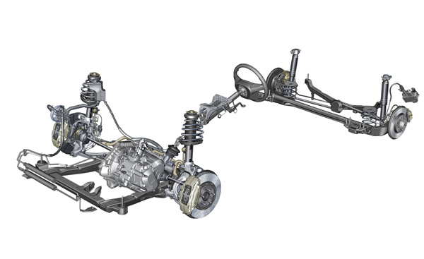 Από εκεί και πέρα, το πλαίσιο εφοδιάζεται με αμορτισέρ της εταιρείας ZF Sachs και υιοθετεί στοιχεία που αναβαθμίζουν τη σπορ συμπεριφορά, όπως είναι τα γόνατα υψηλών επιδόσεων High Performance Struts (HiPerStruts) στην εμπρός ανάρτηση, το ενισχυμένο πλαισίο FlexRide, το μηχανικό διαφορικό περιορισμένης ολίσθησης καθώς και το σύστημα πέδησης της εταιρείας Brembo. Ο παραπάνω χαρακτήρας ενισχύεται με την παρουσία τροχών με 19άρες ζάντες αλουμινίου και ελαστικά διαστάσεων 245/40.