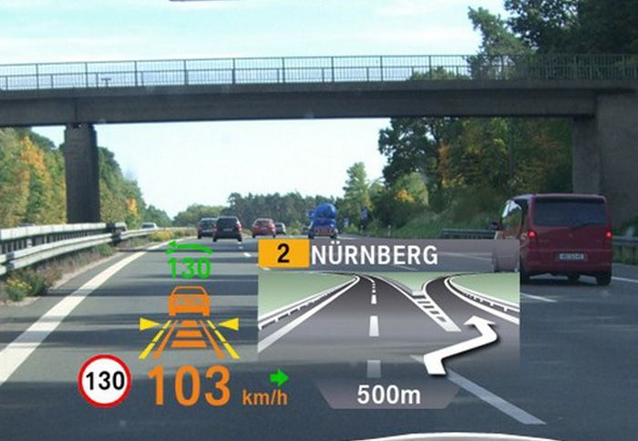 Επιπλέον, το σύστημα HUD επιτρέπει στον οδηγό να επεξεργαστεί τις πληροφορίες σε μικρότερο χρόνο κατά 50%. Η BMW, προκειμένου να βελτιώσει την ευκρίνεια των ενδείξεων, εφάρμοσε στο παρμπρίζ μια λεπτή διάφανη μεμβράνη.