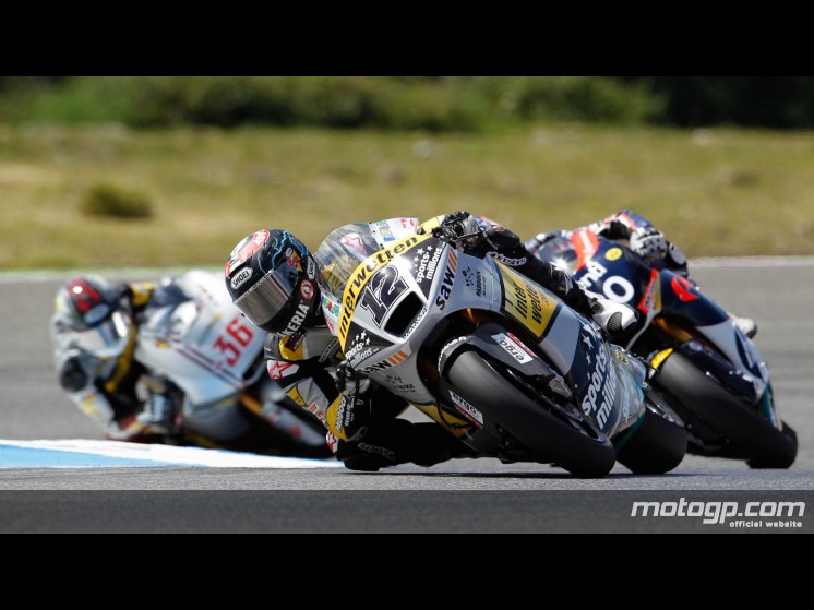 Ο οδηγός της Team CatalunyaCaixa Repsol, Marc Marquez εδραίωσε τον τίτλο του φαβορί της κατηγορίας με την κυριαρχία του στις κατατακτήριες δοκιμές. Πήρε πειστικά την pole position της Moto2 στο Estoril.