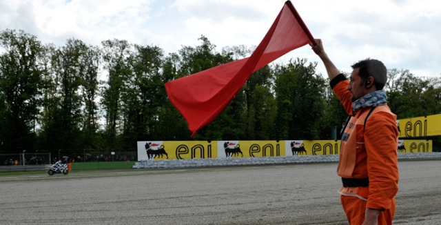 Στα μισά του μισερού αγώνα οι περισσότεροι αναβάτες άρχισαν να χειρονομούν απελπισμένα προς τους κριτές της Curva Grande. Αμέσως βγήκε η κόκκινη σημαία και ο αγώνας τέλειωσε. Ήταν ο πιο σύντομος αγώνας στην σύγχρονη ιστορία των Superbike.