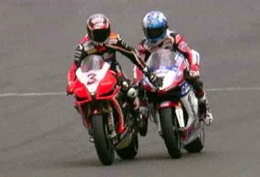 Ο Μax κανονικά θα έχανε το σκέλος σαν θύμα του νέου κανονισμού «single bike rule», (μία μοτοσυκλέτα ανά αναβάτη ανά αγώνα), αλλά η μοίρα του χαμογέλασε και πάλι. Το ωραίο όμως είναι ότι αυτός που τον έφερε σπρωχτό πίσω στα pits ήταν ο μεγάλος του φετινός αντίπαλος Carlos Checa.