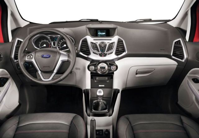 Στον θάλαμο των επιβατών του EcoSport, το ταμπλό μαζί με όλα τα επιμέρους χειριστήρια και τα όργανα έχει μεταφερθεί σχεδόν αυτούσιο από το Fiesta, ενώ μόνο το κάθετο design των ακριανών αεραγωγών, διαφοροποιούνται έναντι του μικρού μοντέλου της Ford παραπέμποντας στο Focus.