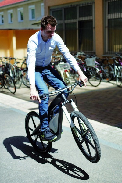 Ένα από τα εντυπωσιακά χαρακτηριστικά του Audi e-bike είναι το ενσωματωμένο σύστημα ελέγχου σούζας! Το σύστημα λειτουργώντας με την ίδια τεχνολογία που ισορροπεί το Segway, δίνει τη δυνατότητα στον αναβάτη να σηκώσει τον μπροστινό τροχό σε συγκεκριμένο ύψος από τον δρόμο, και μετά να το διατηρήσει εύκολα, ανεξάρτητα από το πόσο ανοιγοκλείνει το γκάζι.