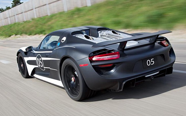 Σήμερα, η γερμανική εταιρεία έδωσε επίσημα στη δημοσιότητα τις πρώτες μη-καμουφλαρισμένες φωτογραφίες του εντυπωσιακού της κουπέ, το οποίο είναι «ντυμένο» όπως και η θρυλικές Porsche 917 του παρελθόντος. Σε ότι αφορά τις τεχνικές της περγαμηνές, αξίζει να υπενθυμίσουμε πως η 918 Spyder υιοθετεί την τελευταία λέξη της plug-in υβριδικής τεχνολογίας κινούμενη από ένα μηχανικό σύνολο βενζίνης και δύο «παράλληλους» ηλεκτροκινητήρες.