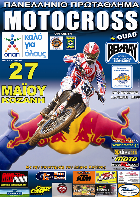 Το πανελλήνιο πρωτάθλημα Motocross συνεχίζεται με τον 4ο αγώνα της χρονιάς που θα γίνει στην πανοραμική, τεχνική, και πρόσφατα ανανεωμένη δημοτική πίστα της Κοζάνης, στα Πετρανά.