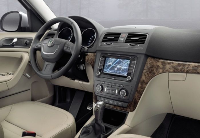 Το εσωτερικό του Yeti ξεχωρίζει για την πολύ καλή συνολική του εικόνα. Εργονομικά ψεγάδια δεν υπάρχουν, η θέση οδήγησης είναι απροβλημάτιστη και τα υλικά που έχουν χρησιμοποιηθεί είναι ποιοτικά. Η πρακτικότητα εξασφαλίζεται από την παρουσία πολλών χώρων και θέσεων για μικροαντικείμενα καθώς και από τα συρόμενα (κατά 80 χιλιοστά) και αφαιρούμενα πίσω καθίσματα, που δίνουν μια νότα πολυχρηστικότητας. Έτσι, ανάλογα με τη θέση των πίσω καθισμάτων η χωρητικότητα του πορτμπαγκάζ κυμαίνεται από 405 έως 510 λίτρα, ενώ με την αφαίρεσή τους φτάνουν μέχρι και τα 1.760, που επαρκούν ακόμα και για μια μικρή μετακόμιση. Από την άλλη οι χώροι για 4 ή και 5 ενήλικες είναι κάτι παραπάνω από ικανοποιητικοί –ειδικά μάλιστα σε ότι αφορά το εσωτερικό ύψος.