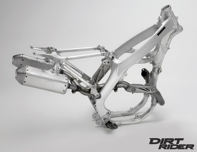 Το νέο 450, καταρχήν να πούμε ότι έχει καινούργιο πλαίσιο (αλουμινένιο 6ης γενιάς) και το ριζοσπαστικό πιρούνι αέρος της KYB. Η Kawasaki πρόλαβε για πολύ λίγες μέρες να αρπάξει τη δόξα της πρώτης εταιρείας που το φόρεσε σε μοντέλο της.