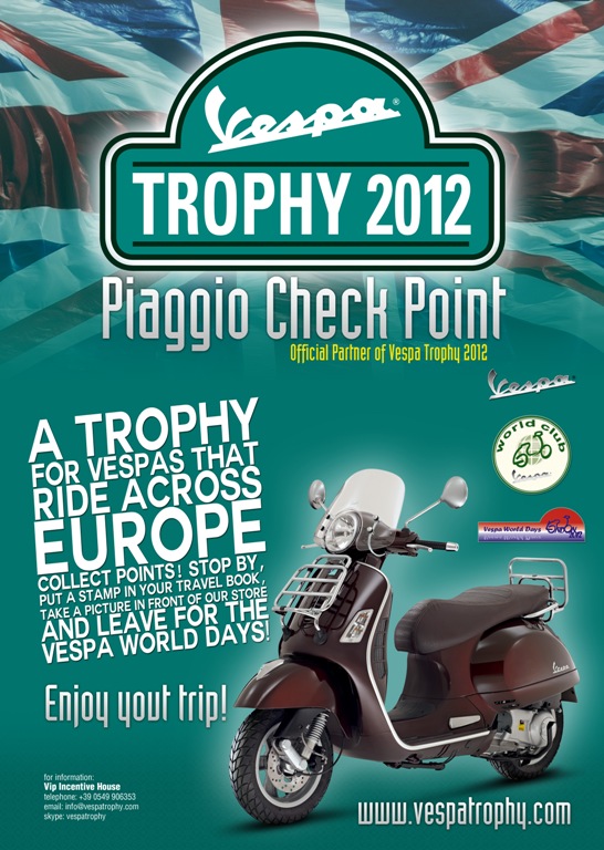 Αφού επιλέξουν τη διαδρομή που θα ακολουθήσουν, θα ξεκινήσουν οδηγώντας τις Vespa τους μαζί με την παρέα από φίλους της Vespa, συλλέγοντας σφραγίδες και θα φωτογραφηθούν όλοι μαζί μπροστά από τα check points. Φθάνοντας στον τελικό προορισμό, το Λονδίνο, μπορούν να κερδίσουν το Vespa Trophy 2012 (οι κανονισμοί υπάρχουν στο: www.vespatrophy.com).