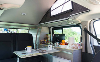 Το εσωτερικό του NV300 Camper μπορεί να μεταμορφωθεί σε σπίτι για τέσσερα άτομα χάρη σε μια ανυψούμενη οροφή, όπου μπορούν να καθίσουν γύρω από το τραπέζι και να απολαύσουν το γεύμα τους. Υπάρχει δυνατότητα παρασκευής φαγητού μέσα στο όχημα, χάρη στην κουζίνα του που διαθέτει ψυγείο, νεροχύτη και εγκατάσταση νερού και αερίου.