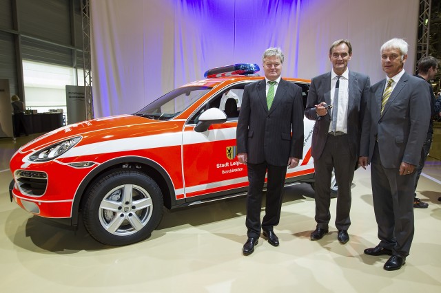 Το επετειακό αυτοκίνητο, ένα λευκό Cayenne με κινητήρα V8, δέχθηκε τις απαραίτητες μετατροπές με τη βοήθεια των εκπαιδευόμενων μηχανικών της Porsche για να ενταχθεί ως όχημα του κέντρου ελέγχου στην πυροσβεστική υπηρεσία της Λειψίας.
