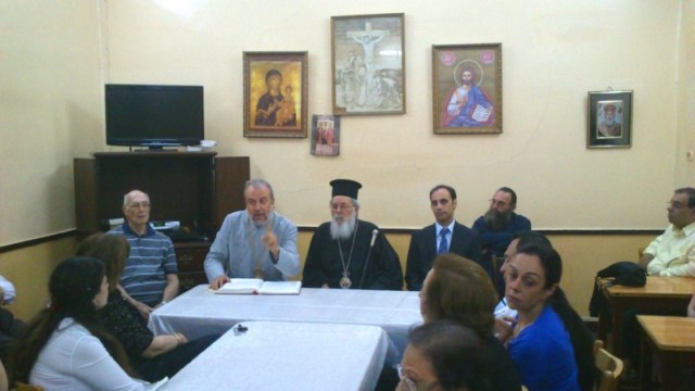 Η επίσκεψη στο εντευκτήριο της κοινότητας συνέπεσε με μια μικρή συνεστίαση που είχε οργανωθεί για να μιλήσει ο Αιδεσιμότατος Καλλίνικος. Ήταν πραγματικά μια συγκινητική εμπειρία που είχα την ευκαιρία να γνωρίσω και να συνομιλήσω με τους λιγοστούς έλληνες ομογενείς της πόλης, οι οποίοι εξακολουθούν –παρά τις ανυπέρβλητες πια δυσκολίες– να κρατούν με αυταπάρνηση τις δικές τους εθνικές και θρησκευτικές «Θερμοπύλες».