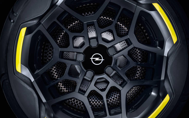 Η αυθεντικότητα της σχεδίασης φαίνεται και στην έξυπνη τοποθέτηση των αεραγωγών, που είναι διακριτικά τοποθετημένοι πίσω από τις οθόνες, αφήνοντας καθαρές τις επιφάνειες. Δύο οθόνες στα άκρα του εμπρός πάνελ προβάλλουν τις πλαϊνές όψεις που καταγράφουν οι δύο μικρές αναδυόμενες κάμερες. Η σχεδίαση του τιμονιού έχει απλουστευθεί, ενώ η κεντρική μονάδα του επαναλαμβάνει το σχήμα του Opel Vizor. Και όπως και τα αντίστοιχα εξαρτήματα στους τροχούς το LED Opel Blitz στο κέντρο του παραμένει σταθερό ανεξαρτήτως από τη θέση του τιμονιού.