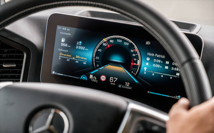 Οι εφαρμογές βοηθούν τον οδηγό να εκπληρώνει τις μεταφορικές εργασίες του. Το Truck Data Centre συνδέει μόνιμα το φορτηγό με το cloud και αποτελεί τη βάση για όλες τις λύσεις συνδεσιμότητας. Η παρακολούθηση του φορτηγού σε πραγματικό χρόνο μέσω του Fleetboard και του Mercedes-Benz Uptime δημιουργεί προστιθέμενη αξία για τον επιχειρηματία. Ο οδηγός απολαμβάνει, επίσης, μεγαλύτερη ευκολία χειρισμού χάρη στο νέο κλειδί με τηλεχειριστήριο που διατίθεται στο βασικό εξοπλισμό.