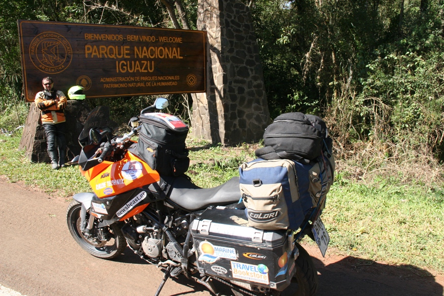 Οι καταρράχτες Iguazu εντοπίζονται ακριβώς στα σύνορα Αργεντινής- Βραζιλίας- Παραγουάης. Από τους 275 καταρράχτες που υπάρχουν εδώ, το 85% βρίσκεται στο έδαφος της Αργεντινής, όπου και στρατοπέδευσα. Για δυο μέρες απόλαυσα ένα σούπερ υδάτινο θέαμα, που αντιπροσωπεύει ένα από τα πιο θαυμαστά φυσικά φαινόμενα στον πλανήτη. Και μετά τους καταρράχτες, σειρά είχε η Βραζιλία να υποδεχτεί την πορτοκαλί μοτοσυκλέτα με τον μοναχικό ταξιδιώτη…».