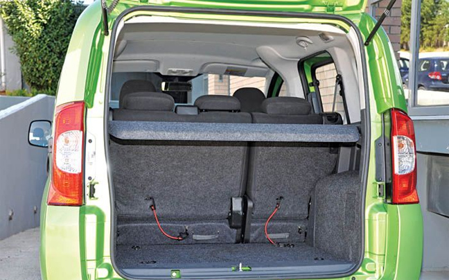 Το εσωτερικό του Qubo είναι ευχάριστο και όμορφο, ενώ, από πλευράς ποιότητας, τα σκληρά στην αφή υλικά έχουν μέτριο φινίρισμα και αποδεκτή συναρμογή. Το μεγάλο άνοιγμα της πόρτας στο πίσω τμήμα, αποκαλύπτει έναν τετραγωνισμένο και πλήρως εκμεταλλευόμενο χώρο αποσκευών με όγκο 330 λίτρων. Εφόσον αναδιπλωθεί πλήρως το πίσω κάθισμα, τότε το νούμερο αυτό φτάνει έως και τα 2.500 λίτρα. Στο πίσω κάθισμα του Qubo, λόγω του διαθέσιμου πλάτους, θα χωρέσουν μόνο δύο ενήλικοι επιβάτες, οι οποίοι απολαμβάνουν όμως πολύ «αέρα» για τα κεφάλια τους.
