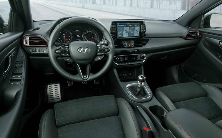 Ο πίνακας οργάνων του νέου i30 Fastback N, σχεδιασμένος σε οριζόντια διάταξη, διατίθεται με δύο διαφορετικά συστήματα ψυχαγωγίας: Σύστημα ήχου Display με 8 ιντσών οθόνη αφής LCD, ενσωματωμένη κάμερα οπισθοπορείας και σύνδεση Bluetooth, ή Σύστημα πλοήγησης με οθόνη αφής 8 ιντσών και 7ετή δωρεάν συνδρομή στις υπηρεσίες LIVE. Και οι δύο επιλογές υποστηρίζουν Apple CarPlay και Android Auto, τα οποία επιτρέπουν στους χρήστες να συνδέουν τα smartphones τους με το αυτοκίνητο για να ελέγχουν λειτουργίες μουσικής, τηλεφώνου ή πλοήγησης στην οθόνη. Ειδικότερα, το Mode N μενού, προσφέρει ρυθμίσεις για τον κινητήρα, την Rev matching, τον ήχο της εξάτμισης και τις ρυθμίσεις Performance.