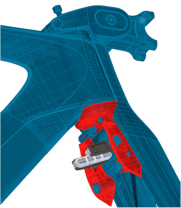 Φυσικά το πλαίσιο αποτελείται από ανθρακονήματα μονής κοπής (χωρίς κολλήσεις δηλαδή), ενώ όλα τα καλώδια και οι ντίζες των χειριστηρίων, περνούν μέσα από τον σκελετό για ακόμη λιγότερη αεροδυναμική αντίσταση. Κερασάκι στην τούρτα είναι η ουρά «kamm» και τα φρένα που είναι χωνευτά στο επάνω μέρος του πιρουνιού και του πλαισίου για το εμπρός και το πίσω φρένο αντίστοιχα.