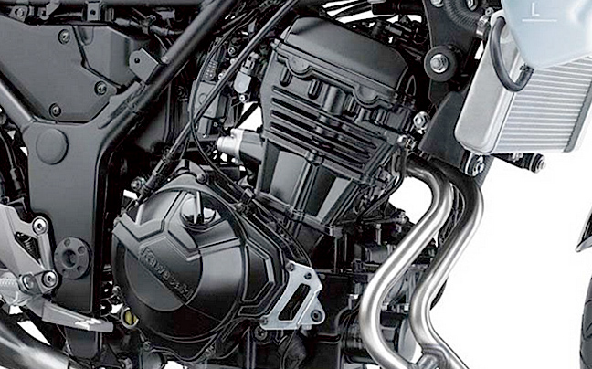 Το Ninja 300 φορά κινητήρα βασισμένο σε κείνον του 250, αλλά με 296 κυβικά εκατοστά και ψεκασμό με δύο πεταλούδες ανά αυλό. Η μικρή αύξηση του κυβισμού και η βελτίωση της τροφοδοσίας προσθέτει 7 ίππους στην απόδοση, φτάνοντάς την στους 39. Θυμίζουμε ότι το παλιό δίχρονο race replica Suzuki RG250 Gamma απέδιδε γύρω στους 45bhp (1983).