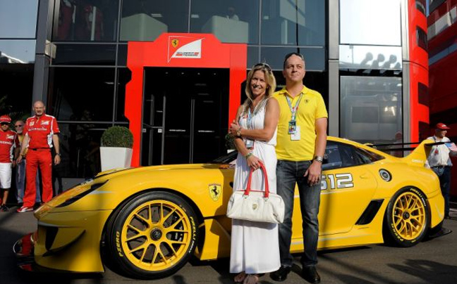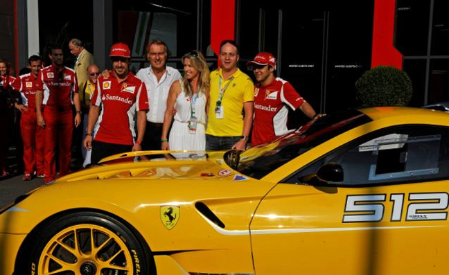 Ο Benjamin Sloss κατοχύρωσε το αυτοκίνητο έναντι 1,4 εκατ. ευρώ. και σήμερα το παρέλαβε στην Ιταλία από τον επικεφαλής της Ferrari boss Luca di Montezemolo καθώς και τους πιλότους της F1 Fernando Alonso και Felipe Massa.