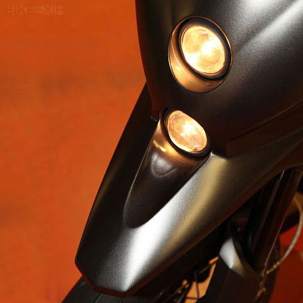 Το ψυγείο λαδιού έχει προστεθεί σε εμφανές σημείο, ενώ το ρύγχος είναι τελικά το πλέον αμφιλεγόμενο αισθητικά στοιχείο της μετατροπής. Μαζί με την πρόσοψη που δημιουργεί σύγχυση, όντας τεράστια για «μάσκα» (τύπου enduro) αλλά μικρό και παράδοξου σχήματος για φέρινγκ. Τα φλας στους καθρέπτες και η καρίνα συμπληρώνουν την εικόνα και την συνύπαρξη «αταίριαστων» στοιχείων δρόμου και on-off.