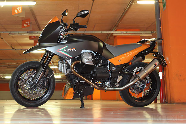Τώρα το κατά πόσο τα 222 κιλά (στεγνού) του Griso θα μπορέσουν να κινηθούν σε ρυθμούς supermotard μάλλον μικρή σημασία έχει. Το παν είναι ότι η όψη και ο χαρακτήρας άλλαξε, όχι όμως και ο τετραβάλβιδος Quattrovalvole V-2 90ο κινητήρας που αφέθηκε ως είχε, χωρίς επεμβάσεις.