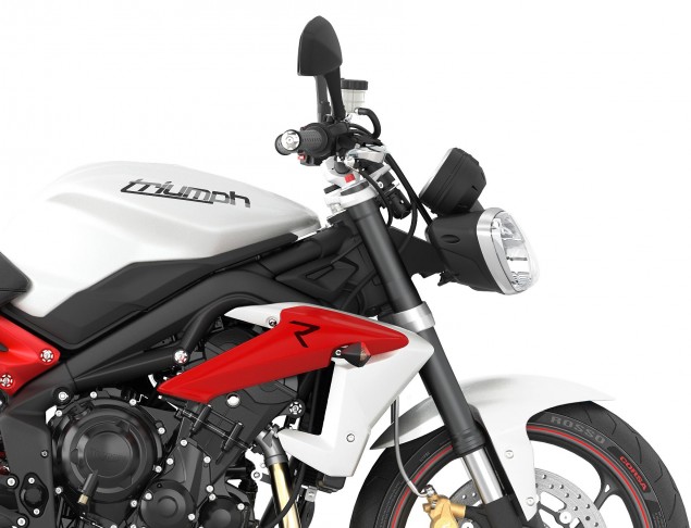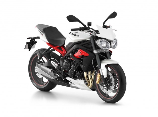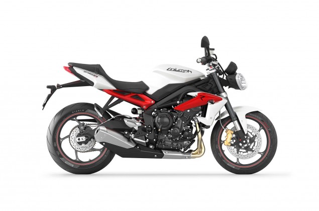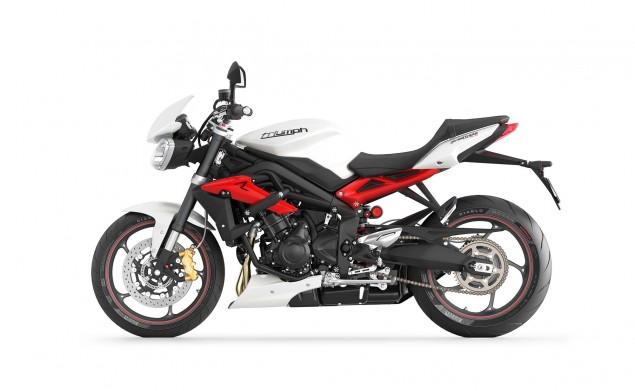 Σημαντική είναι η μείωση του βάρους κατά 6 σχεδόν κιλά, καθώς η Triple πλέον ζυγίζει 181 κιλά πλήρης υγρών. Με τον κινητήρα να έχει μείνει αμετάβλητος, η Triumph ξανασχεδίασε την εξάτμιση ώστε να εναρμονίζεται με τις επόμενες προδιαγραφές θορύβου και ρύπων. Η νέα σχεδίαση και θέση της εξάτμισης βοηθά επίσης την συγκέντρωση των μαζών στο κέντρο της μοτοσυκλέτας.