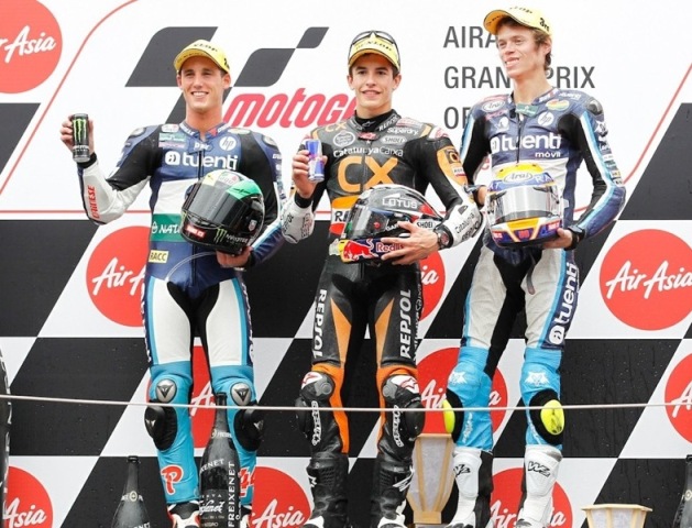 Το τρομερό παιδί της Honda επικράτησε με «παράλογη» ευκολία, παρότι ξεκίνησε σχεδόν τελευταίος, έχοντας ξεχάσει στην εκκίνηση να βάλει ταχύτητα στο κιβώτιο. Ήταν και τυχερός βέβαια, αφού κανείς άλλος από τους αναβάτες πίσω του δεν έπεσε πάνω του όταν έμεινε ακίνητος, ενώ τα φώτα έσβηναν… Δύο ακόμα Ισπανοί συμπλήρωσαν το βάθρο, ολοκληρώνοντας τον ιβηρικό θρίαμβο στη Moto2 επί ιαπωνικού εδάφους.