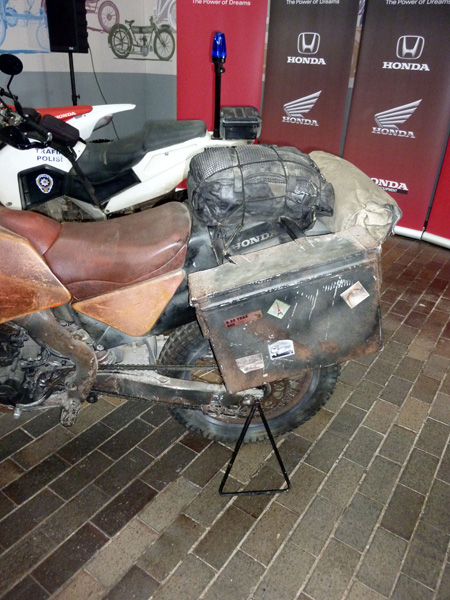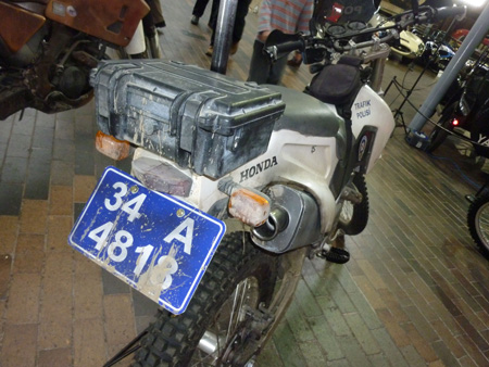 Η αστυνομική και το απλό μεταφορικό μέσο του εμποράκου, δίπλα σε ένα γνήσιο, όπως βγήκε από την παραγωγή, Honda CRF250R βρίσκονται στο Εθνικό Μουσείο Μηχανοκίνησης της Αγγλίας που φιλοξενεί την ετήσιας διάρκειας έκθεση μέχρι την 31 Δεκεμβρίου 2012.