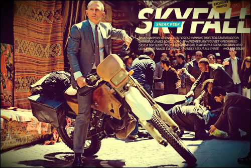 Στον χώρο του Εθνικού Μουσείου Μηχανοκίνησης της Αγγλίας, μαζί με τα απίθανης έμπνευσης οχήματα του JB, βρίσκονται και …δύο από τις δύο μοτοσυκλέτες που χρησιμοποιήθηκαν στα γυρίσματα της πρώτης από τη σειρά ταινιών με τον γενικό τίτλο SKYFALL. Τα γυρίσματα έγιναν στην Κωνσταντινούπολη και στα Άδανα της Τουρκίας και ολοκληρώθηκαν μέσα στη χρονιά που διανύουμε.