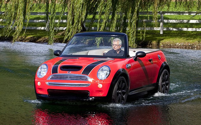 Το αυτοκίνητο-σκάφος με την εξωλέμβια μηχανή 6 ίππων, που αποκαλύφθηκε στον ποταμό «Charles», είναι βασισμένο στην έκδοση του Mini hard-top 2004.
