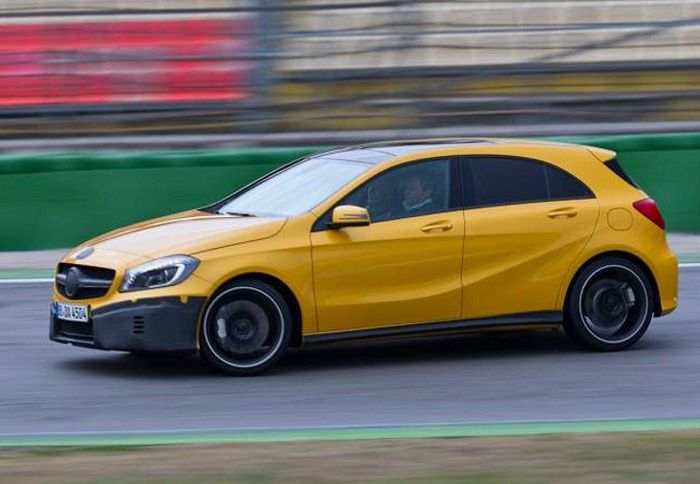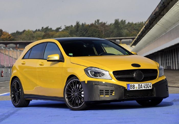 Αυτές είναι οι πρώτες επίσημες εικόνες της κορυφαίας A-Class, με την υπογραφή της AMG. Χάρη στην τεχνογνωσία του βελτιωτικού της οίκου, η Mercedes θα παρουσιάσει στη Γενεύη, τον Μάρτιο του 2013, ένα «καυτό» hatchback, το οποίο θα ξεπερνά τις αρχικές εκτιμήσεις. Οι τελευταίες ήθελαν την A45 AMG να αποδίδει 330 ίππους, αλλά τελικά, με τις απαραίτητες βελτιώσεις στον δίλιτρο τετρακύλινδρο κινητήρα, η απόδοση εκτοξεύεται στους 354 ίππους, με 450 Nm ροπής, που θα μεταδίδονται και στους τέσσερις τροχούς.