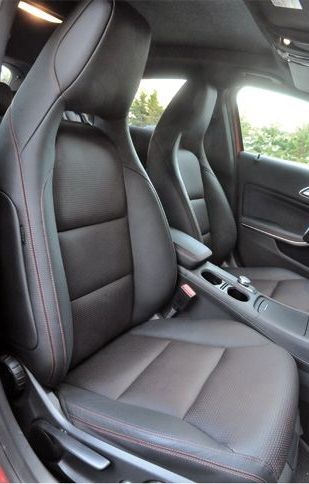 Το γνωστό μοτίβο στην καμπίνα της A-Class έχει αποκτήσει ιδιαίτερα σπορτίφ χαρακτήρα χάρη σε ιδιαίτερες λεπτομέρειες, όπως το ανθρακονημάτινο φινίρισμα του ταμπλό, οι κόκκινες ραφές, το flat bottom δερμάτινο τιμόνι, οι χρωμιωμένοι στρογγυλοί αεραγωγοί και φυσικά τα μπάκετ καθίσματα με το ενιαίο προσκέφαλο. Από εκεί και πέρα, η συναρμογή είναι άψογη και τα υλικά πολύ καλής ποιότητας.