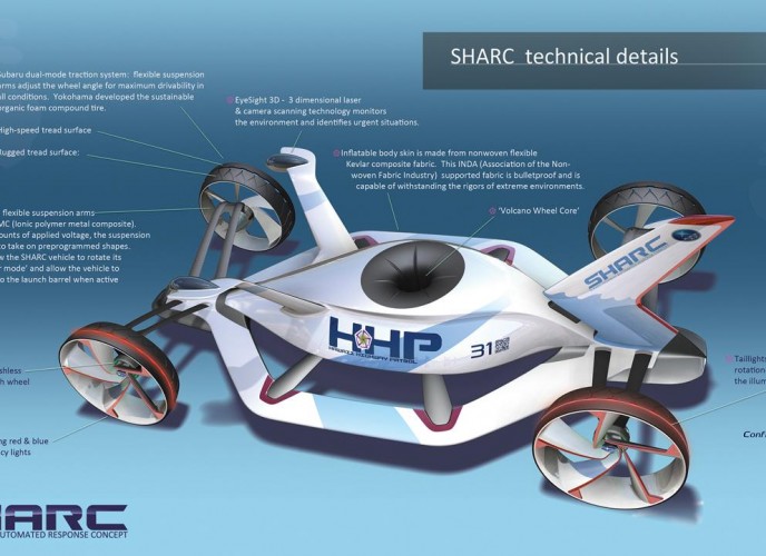 Οι σχεδιαστές της Subaru που πήραν το πρώτο βραβείο μάλιστα πήγαν ένα βήμα παρακάτω καθώς εκτός από την κυκλοφορία στους δρόμους, το SHARC θα μπορεί να αιωρείται πάνω από το έδαφος για λόγους επιχειρησιακούς.